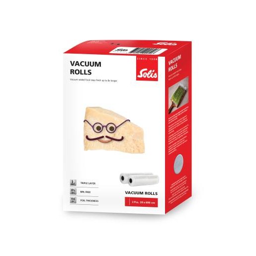 Jeste li s tržnice donijeli svježu ribu, sočne jagode ili sir? Skuhali ste nekoliko porcija, ali ne želite odmah sve pojesti? Solis folija za vakuumsko brtvljenje prehrambene kvalitete pomaže vam u pohranjivanju svježe kupljene ili otvorene hrane svaki dan. Jednostavno upotrijebite foliju s vašim vakumskim uređajem i vaša će hrana biti uredno i sigurno zapakirana. Možete postići 4x duži rok trajanja bez gubitka arome i konzistencije. Prednost u odnosu na vakuum vrećice: Rola se može pojedinačno rezati na određenu veličinu - za veća i manja punjenja.