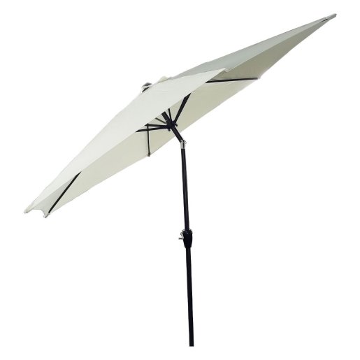 Ovaj elegantni suncobran savršen je za stvaranje hlada i zaštitu od štetnih sunčevih UV zraka. Izrađen od poliestera, otpornog na UV zrake i blijeđenje, pokrov od suncobrana pruža optimalnu zaštitu od sunca i lako se čisti. Možete ga fleksibilno poravnati s položajem sunca jer ga možete nagnuti u stranu, tako da pouzdano pruža hlad ovisno o trenutnom položaju sunca. S promjerom stupa od 38 mm, može se montirati na stalak ili u sredinu stola s otvorom. Lako se otvara i zatvara zahvaljujući mehanizmu s ručicom. Aluminijska konstrukcija suncobrana je postojana i nije podložna koroziji. Preporučujemo tretiranje tkanine suncobrana sprejom s vodootpornom tekućinom. Karakteristike: Suncobran bež boje. Promjer suncobrana 3 m. Opremljen sustavom s ručicom za podizanje/spuštanje. 6 čeličnih rebara: 12 x 18 x 0,5 mm jamče dodatnu sigurnost. Materijal izrade: poliester 180/m2 g. UV 50+, s otvorom za strujanje zraka. Nagibni aluminijski stup promjera 38 mm. Isporuka: bez postolja.