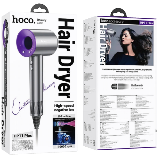 HOCO HP11 Plus je napredno sušilo za kosu snage 1600W s funkcijom ionizacije. S tri postavke brzine i temperature sušilo za kosu pruža izvrsne rezultate sušenja i oblikovanja, a pritom brine o zdravlju kose. - Snaga i učinkovitost HOCO HP11 sušilo za kosu opremljeno je motorom od 110.000 okretaja u minuti, koji osigurava brzo i učinkovito sušenje kose. Snaga uređaja je 1600W, što omogućuje prilagođavanje intenziteta sušenja individualnim potrebama. Tehnologija ionizacije stvara 620 milijuna negativnih iona koji pomažu u njezi kose, sprječavaju kovrčanje i daju joj zdrav sjaj. - Praktičnost korištenja HOCO HP11 Plus ima kompaktne dimenzije, što ga čini praktičnim za korištenje i lakim za spremanje. Dugi kabel od 1,8 metara s europskim utikačem omogućuje slobodu kretanja tijekom sušenja, što je posebno važno u profesionalnim primjenama. Materijali korišteni za izradu sušilice osiguravaju trajnost i otpornost na oštećenja. - Širok raspon postavki Sušilica nudi tri razine brzine i tri temperaturna načina: niska temperatura (45°C), topli zrak (65°C) i vrući zrak (105°C). To vam omogućuje prilagođavanje sušila za različite tipove kose i želje, osiguravajući optimalne rezultate sušenja i oblikovanja bez rizika od oštećenja vaše kose. - Pribor HOCO HP11 Plus sušilo za kosu dolazi s mlaznicom za zrak koja vam omogućuje precizno usmjeravanje protoka zraka, što olakšava oblikovanje i modeliranje vaše kose. • Brzina motora: 110.000 o/min • Snaga: 1600 W • Brzina strujanja zraka / temperatura: 3 brzine / 3 temperature (niska temperatura 45 °C, topli zrak 65 °C, vrući zrak 105 °C) • Tehnologija ionizacije: 620 milijuna negativnih iona • Dužina kabela: 1,8 met. (europski utikač) • Materijal: PA66 + 30% vlakana • Dimenzije: 78 x 100 x 250 mm • Težina: 505 g • Pribor: mlaznica za zrak