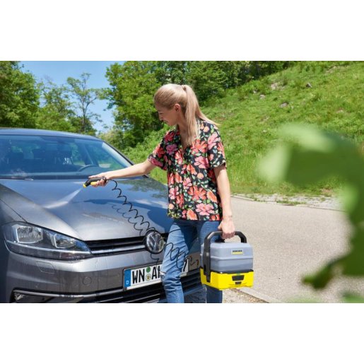 Zahvaljujući integriranoj litij-ionskoj bateriji i uklonjivom, praktičnom spremniku za vodu zapremine 7 L možete očistiti, primjerice, svoj bicikl ili prljave cipele za pješačenje čak i bez priključka za struju ili vodu. S nježnim, ali učinkovitim ravnim mlazom pod niskim tlakom tlačni čistač idealan je za osjetljive površine.