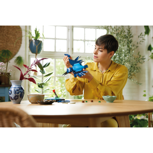 LEGO® Icons komplet za uređenje doma i ureda. Uronite u impresivan graditeljski projekt s kompletom za gradnju ptica Kingfisher LEGO® Icons za odrasle. Dodajte dašak prirode svakom prostoru. Unesite podsjetnik na čuda prirode u svoj dom ili ured s ovim modelom zaslona s detaljnim i šarenim zaslonom. Sastavite dojmljiv ukras za dom ili ured kompletom za slaganje za odrasle. Komplet LEGO® Icons Riječni vodomar (10331) odličan je poklon za zaljubljenike u ptice i zanimljiv projekt za nove i napredne LEGO graditelje. Model vodomara prikazuje pticu poznatu po predivnom perju i nevjerojatnim sposobnostima lova kako izlazi iz vode s ribom u kljunu. Oko nje su voda i trska, koje mogu poslužiti i kao postolje za izlaganje. Namjestite glavu i kandže ptice u položaj koji vam se najviše sviđa, a onda je izložite da joj se svi mogu diviti. Opustite se uz inspirativnu liniju LEGO kompleta za kreativno slaganje osmišljenih posebno za odrasle. U aplikaciji LEGO Builder dostupna je digitalna verzija uputa za slaganje iz kompleta.