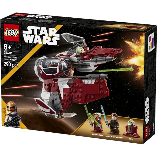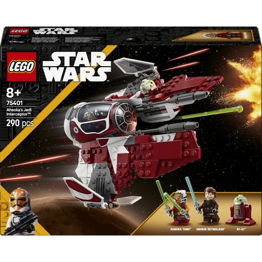 Djeca će uživati u smišljanju uzbudljivih pustolovina kao u seriji Ratovi zvijezda: Ratovi klonova™ uz model Ahsokin Jedi presretač (75401) za slaganje. Jedi presretač iz linije LEGO® Star Wars™ može biti sjajan poklon za dječake, djevojčice i obožavatelje od 8 godina i starije. Slaže se od kocaka i ima kabinu koja se otvara, podesiva krila za napad i krstarenje te 2 pucača na opruge. U kompletu za slaganje i igru dobivate 2 figurice iz linije LEGO Star Wars, Ahsoku Tano i Anakina Skywalkera sa svjetlosnim mačevima™, te LEGO figuru droida R7-A7 za fantastičnu igru. Ahsoka stane u kabinu Jedi presretača, naći će se mjesta i za droida R7-A7 i Ahsokine svjetlosne mačeve™. Obogatite kreativno iskustvo djece uz aplikaciju LEGO Builder u kojoj mogu približavati i okretati digitalnu trodimenzionalnu verziju svemirskog broda iz Ratova zvijezda dok slažu. Složivi model vozila iz Ratova zvijezda odličan je kao samostalna igračka, a može se i kombinirati s drugim kompletima LEGO Star Wars (prodaju se zasebno) iz velike linije.