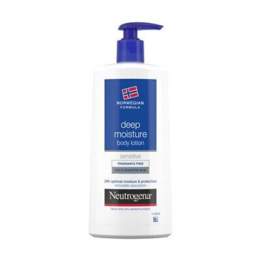 Neutrogena losion body suha/osjetljiva koža 400 ml Neutrogena® norwegian formula® deep moisture hipoalergenski losion za suhu kožu i osjetljivu kožu. Ova jedinstvena norveška formula obogaćena hidratantnim glicerinom trenutno smiruje i hidratizira tijekom 48 sati. Osjetljiva koža je umirena, zaštićena i mekša u samo jednoj primjeni. nemasna, bez mirisa i hipoalergena*. Razvijeno u suradnji s dermatolozima. * formuliran kako bi se umanjio rizik od alergijske reakcije