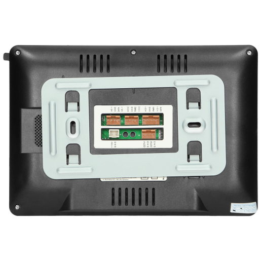 Video interfon, set, uključuje ravni 7" LCD monitor u boji i vrlo izdržljivu, širokokutnu video-kameru. OSD meni prilagođen korisniku, koji se koristi za trenutno podešavanje parametara monitora. Set omogućava kontrolu kapije i otvaranje brave vrata, zaključavanje izlaza, direktno sa panela video kamere. Žična veza, 4 + 2 žični sistem, mrežno napajanje , mogućnost proširenja sa dodatnim monitorom, otvaranje kapije. LCD monitor 7", rezolucija 800 x 480, 12 melodija zvona, interkom funkcija, dimenzije 185 x 127 x 17 mm Kamera ( vanjska jednica ), ugao gledanja vertialno / horizontalno - 96° / 110°, rezolucija 700 TVL, noćno osvetljenje bijela LED, IP65, dimenzije 55 x 152 x 21 mm