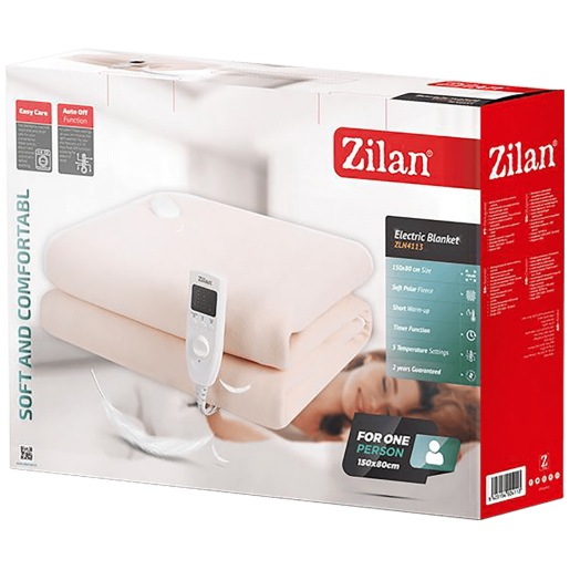 Električna deka, stalna i ravnomjerno raspoređena temperatura, kratko zagrijavanje, mekani materijal, 5 postavki temperature, funkcija timer 1 - 10 h, osigurač struje i temperature, zaštita od pregrijavanja, odvojivi priključak + VDE utikač, perivo, snaga 60 W, dimenzije 150 x 80 cm